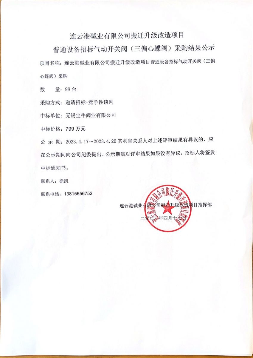 氣動開關閥(三偏心蝶閥)采購結果公示