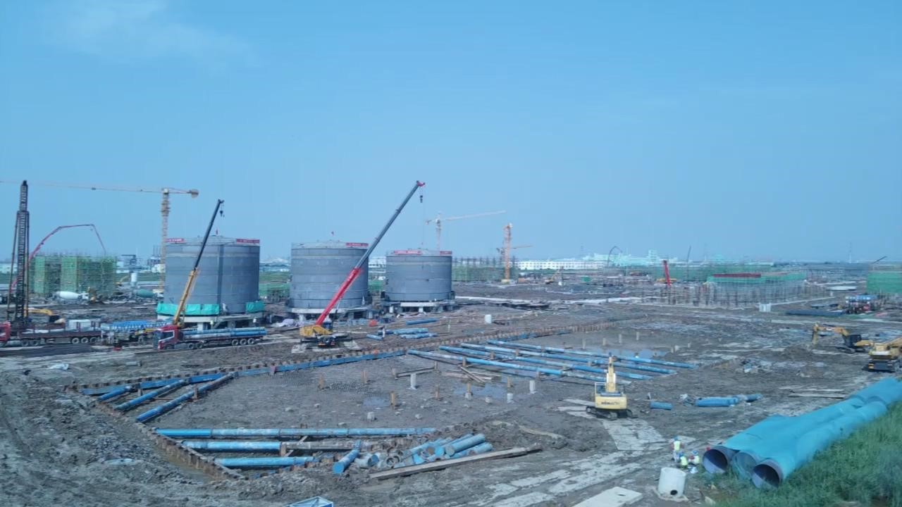 ⑴聯(lián)堿一標(biāo)段101b聯(lián)堿辦公樓屋面女兒墻拆模養(yǎng)護(hù);152中心控制室屋面鋼結(jié)構(gòu)進(jìn)場,砌體施工;151化驗(yàn)中心四層支撐架搭設(shè);340機(jī)電儀維修廠房鋼結(jié)構(gòu)工廠預(yù)制,砌體施工;510重堿車間V51301A設(shè)備中心筒與溢流箱合攏,氨II澄清桶安裝,母液I澄清桶安裝.管廊基礎(chǔ)防腐回填;532重灰段深基坑回填、水池養(yǎng)護(hù);280b換熱站屋面鋼結(jié)構(gòu)工廠預(yù)制。
